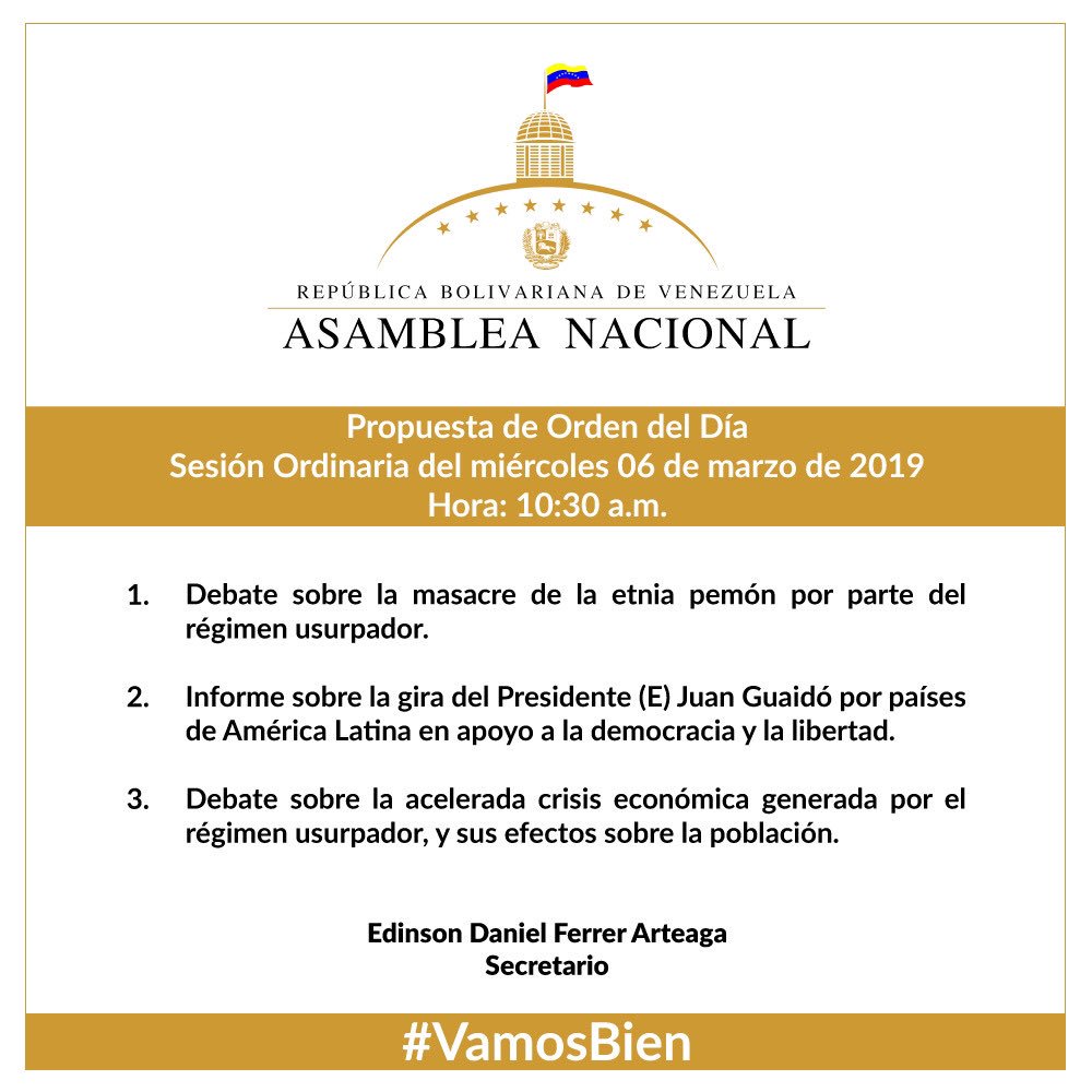 Asamblea Nacional. Propuesta de Orden del día. 06-03-2019